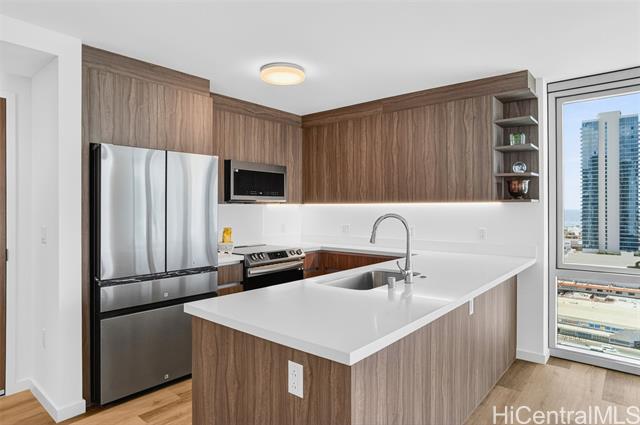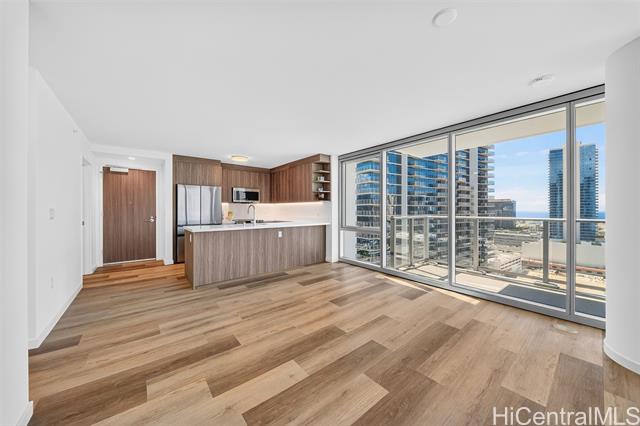 "spacious 2-bedroom, 2-bathroom, 2-parking corner unit, never lived in, located in a vibrant new community at the newly completed the park on keeaumoku – liona tower, with beautiful ocean, city, and mountain views, just minutes from ala moana's shopping, dining, and entertainment. this bright home features floor-to-ceiling windows, a private wraparound lanai, a modern kitchen with quartz countertops, luxury vinyl plank flooring in the living areas and kitchen, and split a/c in every room for year-round comfort.  residents enjoy resort-style amenities including an infinity pool, spa, cabanas, a fully equipped fitness center with sauna, community gathering areas and clubrooms, and barbecue pavilions perfect for entertaining. the development also includes a commercial complex with upscale restaurants and food courts on the first and second floors." -