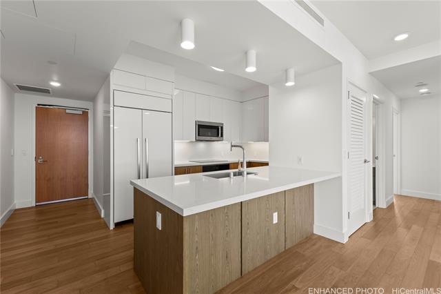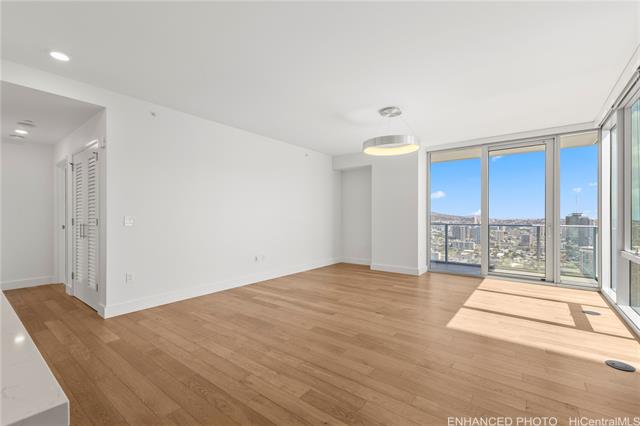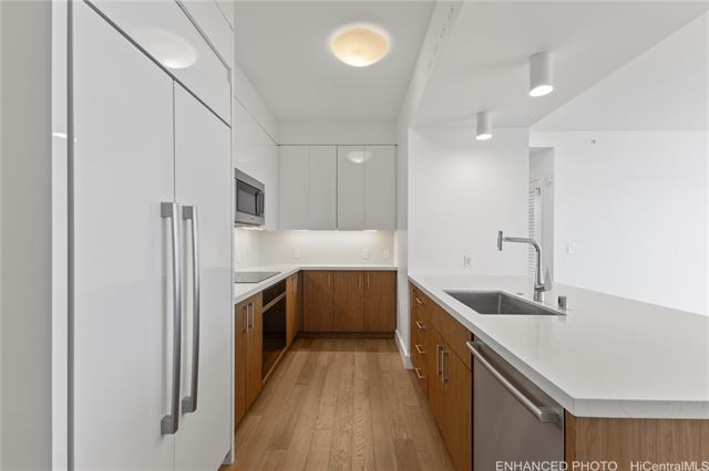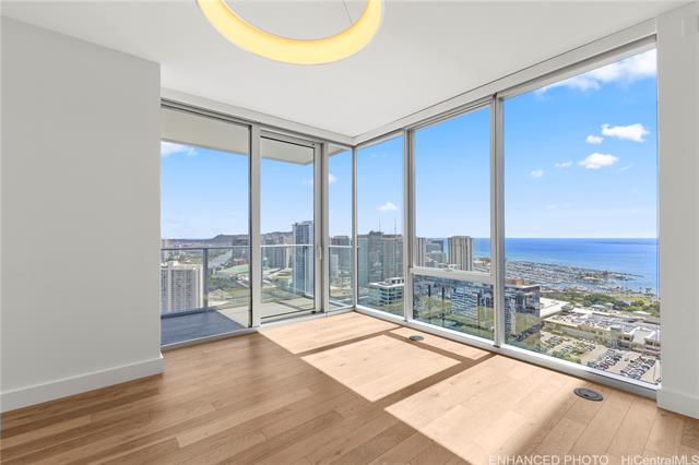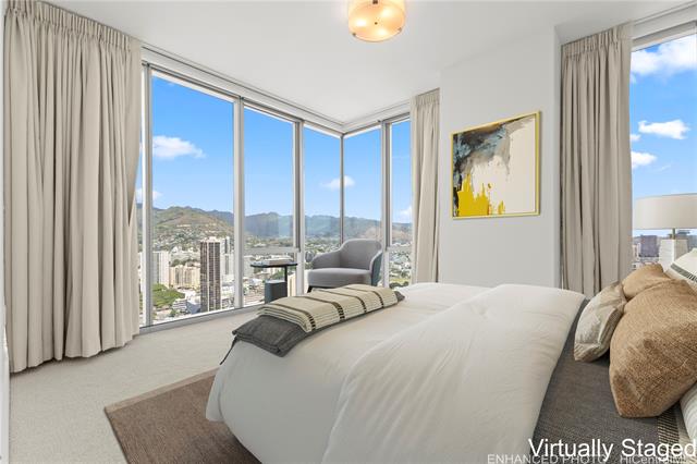 experience modern urban living in the heart of honolulu with this premium 2-bedroom, 2-bathroom corner unit at azure ala moana. situated on a desirable high floor with soaring 9-foot ceilings, this home offers both comfort and style. the kitchen features top-of-the-line appliances, including a sub-zero refrigerator, bosch microwave, wolf cooktop and oven, and bosch dishwasher. the living room has roller shades, while all bedrooms are equipped with both roller shades and blackout curtains. a storage locker is conveniently located in your assigned parking stall, along with two side-by-side reserved covered parking spaces. enjoy being just minutes from ala moana center, ala moana beach park, target, sam's club, and a variety of dining options. azure ala moana provides resort-style amenities such as a pool and jacuzzi, bbq pavilions, movie theater, fitness center, bicycle and surfboard storage, guest suites, and high-speed wi-fi in amenity areas. the building also offers secured entry and 24-hour front desk service for added convenience and peace of mind. discover the perfect balance of convenience, comfort, and luxury at azure ala moana. -