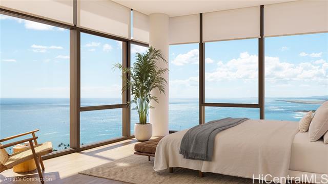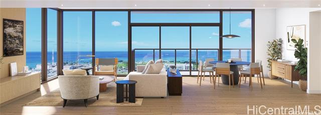 located on front row ala moana blvd. in vibrant kaka‘ako. kali‘u, when completed, will feature a modern coastal living setting rooted in balance. this signature makai 3/3 residence (type a 1,888sf) offers boutique island living with a focus on personal well-being. entry to this unique residence through a dedicated elevator offers a dramatic arrival, unveiling breathtaking views, soaring 9' ceilings, full-height windows, 270-degree panoramic ocean vistas, engineered wood flooring, and a private lanai for seamless indoor-outdoor living. the kitchen is a chef's dream with modern custom cabinetry, premium miele appliances, a full-height wine column, and natural stone countertops. the spa-like primary bath serves as a personal retreat, complete w/ toto fixtures, elegant rain shower, and a first among luxury condos-a toto neorest zero-gravity flotation tub. wellness-inspired amenities elevate the experience further, including an infinity-edge pool, hot/cold plunge pools, private massage rooms, pickleball court, fitness ctr., outdoor bbq cabanas & indoor entertainment spaces featuring a chef's kitchen. kali‘u provides the perfect setting for a life well lived. est. completion: spring 2028 -