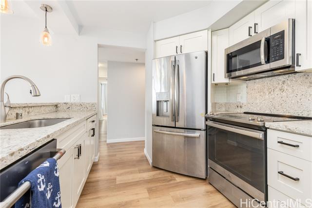 welcome to royal iolani, a highly sought-after condominium perfectly situated near waikiki, ala moana, and iolani school. this spacious 2-bedroom, 2-bath corner unit on the 19th floor offers sweeping views of the ocean, ala wai canal, waikiki beach, and the honolulu city skyline. enjoy cool trade winds and beautiful sunsets from your extra large 331 sqft covered lanai—perfect for relaxing, entertaining, and outdoor dining. the open-concept living area features floor-to-ceiling windows, upgraded laminate flooring, and a modern renovated kitchen with stainless steel appliances and granite countertops. resort-style amenities include a pool, jacuzzi, sauna, bbq areas, tennis courts, fitness center, dog park, kids playground, and 24-hour security. comes with 1 covered parking stall and all utilities are already included in the maintenance fee. assessment already paid of in full for a lower monthly maintenance fee compared to other units. don't miss this rare opportunity to experience convenient city living in peace, comfort, and style at royal iolani #1907. schedule your showing today! -