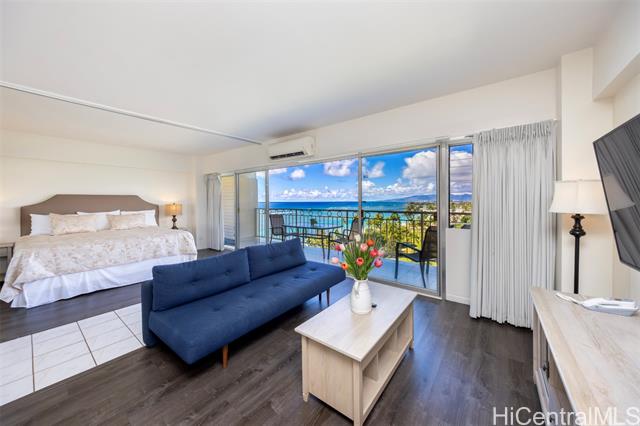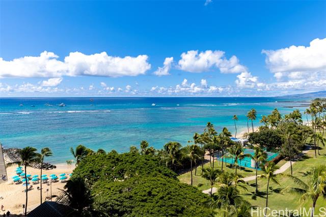 welcome home to waikiki shore, one of honolulu's most iconic oceanfront condominium destinations. situated along waikiki beach, this unrivaled location puts sandy beaches, verdant parks, dining, shopping, entertainment and more at your doorstep. this higher-floor 1-bedroom, 1-bath, 706 sq.ft. residence with a spacious 124 sq.ft. lanai enjoys dynamic 180-degree panoramic views stretching from the pacific ocean, along waikiki beach and derussy park, to waikiki and the majestic koolau mountains. the interior has been updated with a split a/c system, modernized kitchen and bathroom spaces, upgraded flooring, lighting, and more. property qualifies for daily short-term rental, great for investment, second home, or primary residence. discover unparalleled beachfront island living at waikiki shore. listing includes enhanced, zoomed-in photos. -