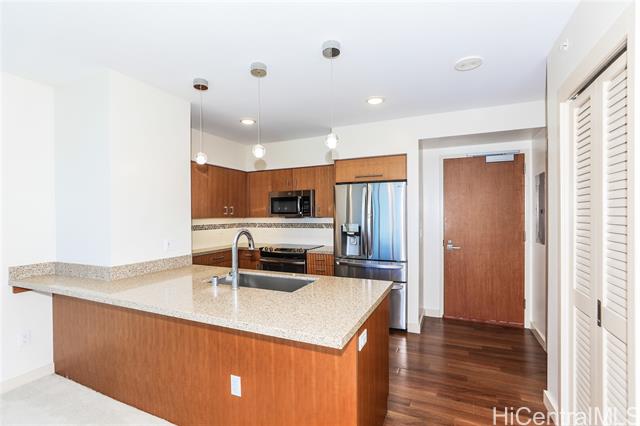 exceptional price for this spacious 2-bedroom, 2-bathroom unit with 2 large, assigned, side-by-side parking stalls at keauhou place in kaka'ako, honolulu, a contemporary high-rise. this modern unit features an open floor plan, with floor-to-ceiling windows, private lanai, allowing residents to enjoy breathtaking city, ocean, and mountain views. high-end finishes include european-style cabinetry, quartz countertops, and energy-efficient appliances. the building provides resort-style amenities such as a swimming pool, jacuzzi, fitness center, bbq areas, and recreational rooms. its prime location in the heart of kaka'ako offers easy access to salt at our kaka'ako, ala moana shopping center, down to earth, h-mart and various dining and entertainment options. with its blend of luxury, convenience, and modern design, keauhou place is ideal for those seeking an urban island lifestyle. 100% hurricane insurance coverage. smoke free building. pet friendly. secure buiilding. 3d virtual tour available. -