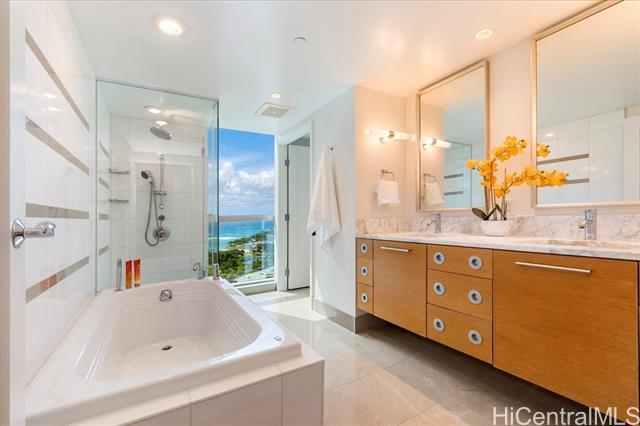 perched high above the city, this exquisite and well-maintained 2-bedroom, 2-bath residence offers 1,518 sq. ft. of refined living space. the expansive, rectangular living room is framed by floor-to-ceiling windows that fill the home with natural light and capture stunning partial ocean views. the thoughtfully designed layout provides both comfort and privacy. each room is generously sized, while the primary suite features a luxurious en-suite bath with a double vanity and breathtaking diamond head views. the gourmet kitchen is both stylish and functional, equipped with high-end viking appliances, a gas stove, and granite countertops. this well-maintained residence also includes two standard parking stalls. enjoy resort-style living with an array of exceptional amenities: a recreation deck, two tennis courts, a heated pool, spas, a walking path, fitness center, billiard room, movie theater, media and conference rooms, concierge-like services, and 24-hour security. perfectly located near ala moana shopping center, beach park, and ward village, this home offers the best of honolulu's vibrant urban lifestyle, world-class dining, shopping, and entertainment all just moments away. -