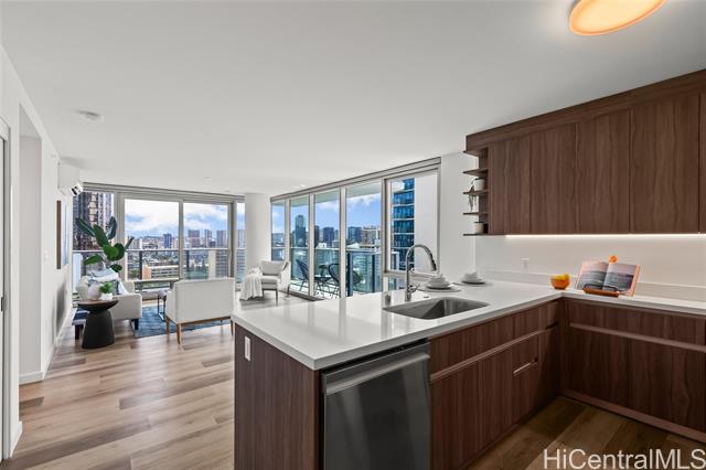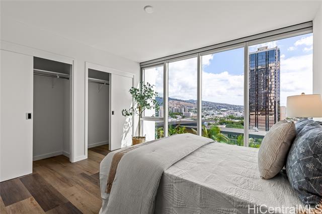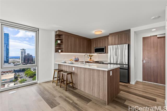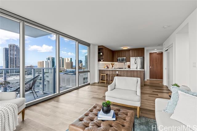 experience modern island living at the park on keeaumoku #1801 in the liona tower, honolulu's newest condominium community. this highly desired corner-end “01” stack features the second largest two-bedroom floor plan with an expansive wraparound lanai showcasing panoramic views of the mountains, diamond head, and the ocean. located on the preferred cooler side of the building, enjoy excellent trade winds and comfortable island breezes throughout the day. the park on keeaumoku offers resort-style amenities including a pool, fitness center, private cabanas, walking paths, and inviting gathering areas—all set within honolulu's vibrant metro hub near ala moana and kapiolani. two side-by-side parking stalls are conveniently located near the building entrance, offering comfort and accessibility in one of honolulu's most dynamic new communities. whether you're seeking a stylish new home or a smart investment, the park on keeaumoku allows for mid-term and long-term rentals, making it an excellent choice for both owner-occupants and investors. va approved and pet-friendly building. -