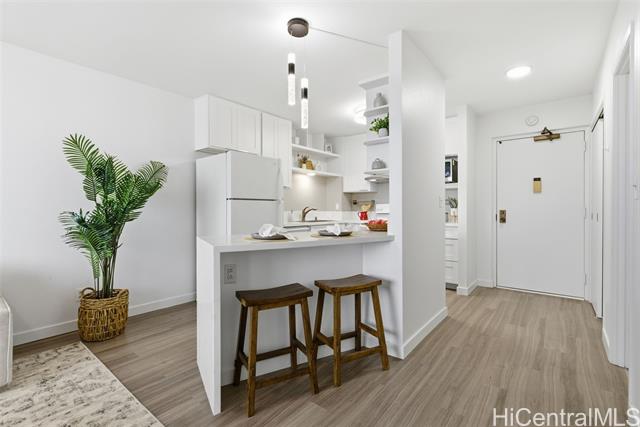 "new listing!! enjoy the best of urban living—where comfort meets convenience—in the heart of downtown honolulu! this tastefully upgraded 1 bdrm/1 bath condo, ideally located in the preferred diamond head tower at kukui plaza, is a must-see. boasting beautiful mountain and city views, this unit features modern vinyl plank flooring, a refreshed bathroom, removal of popcorn ceiling, and a stunning renovated open kitchen with quartz countertops and a sleek waterfall edge. the open floor plan welcomes abundant natural light, creating a warm and inviting space. includes 1 covered, assigned parking stall. kukui plaza offers resort-style amenities including lush garden courtyards, tranquil ponds, a swimming pool, bbq areas, 24-hour security, and more. just moments from shopping, dining, and entertainment. live the convenient downtown honolulu lifestyle!" -