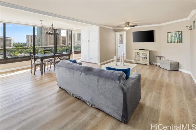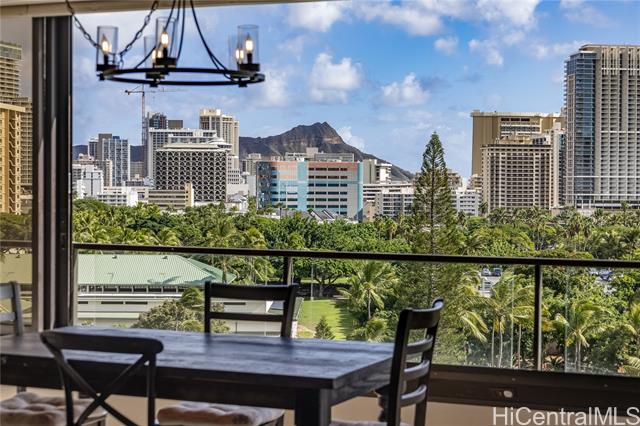 diamond head and ocean views greet you from this bright 2-bedroom, 2-bath residence with a den on the 10th floor of canterbury place, overlooking picturesque durussey park and just minutes from the iconic beaches of waikiki. this spacious home offers a washer and dryer in the unit, large windows that capture natural light and breezes, and an inviting open layout ideal for island living. conveniently located, the building features several new restaurants on the ground level and an island market right across the street. when you're not sunning on the beach or swimming in the blue ocean, enjoy waikiki's fine dining, boutique shopping, and lively entertainment — all within easy reach. situated at the entrance to waikiki, canterbury place also provides quick access to ala moana shopping center, just half a mile away. resort-style amenities include bbq areas, a heated pool, hot tub, sauna, recreation deck, and tennis/pickleball court. there is one assigned covered and secured parking space. the building is pet-friendly, allowing up to two pets with no weight limit — a rare find in waikiki. -