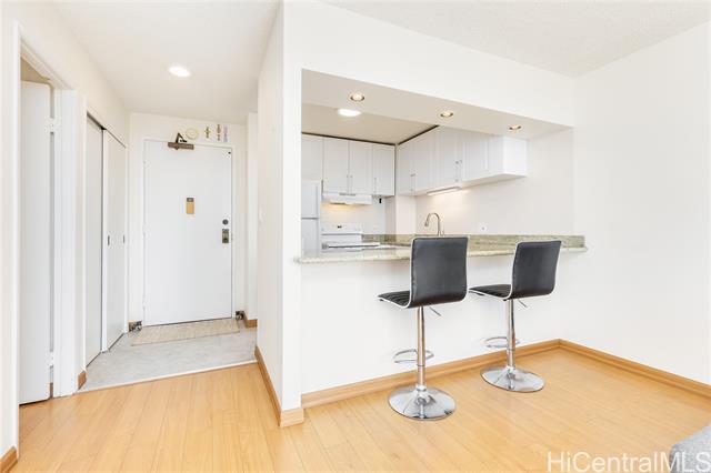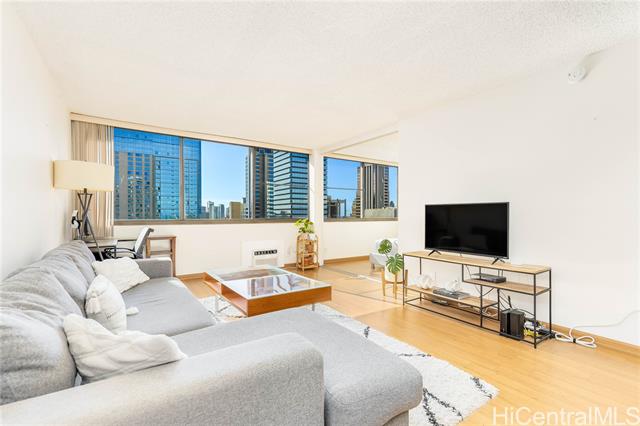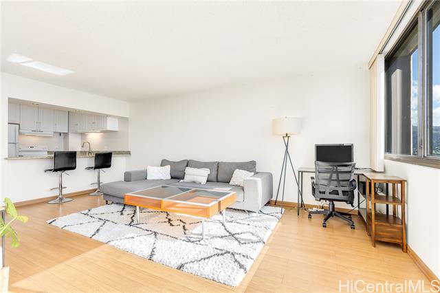 check out this beautifully renovated 1-bedroom, 1-bathroom unit with 1 parking stall at kukui plaza! this move-in ready home features an updated kitchen, updated flooring and an inviting open layout that makes the most of its space while wall to wall windows bring in great natural light. enjoy the unbeatable convenience of living just minutes from shopping, restaurants, and honolulu's financial district. kukui plaza is a secure well-maintained building with fantastic amenities including a pool, bbq area, landscaped gardens with waterfalls and peaceful walking paths with a pavilion. whether you're a first time home buyer or looking for an urban retreat, this home offers comfort, location and lifestyle. -
