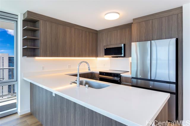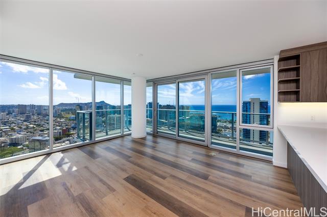the park on keeaumoku is honolulu's newest high-rise destination, just completed in q4 2025. this high-floor, front-corner 2-bedroom, 2-bath residence situated on the 43rd floor of the rycroft tower enjoys stunning diamond head, pacific ocean, and urban honolulu views from the main living areas, wrap-around lanai, and both bedrooms. features include a contemporary kitchen with quartz countertops, stainless appliances, and built-in bar seating, luxury vinyl plank flooring, modern fixtures, plus a primary bedroom with a walk-in closet and double-vanity ensuite bath. enjoy on-site resort amenities including an infinity-edge pool and hot tub, ample pool seating and cabanas, multiple open and covered barbecue pavilions, an exercise gym, yoga studio, meeting room, movie theater, co-working space, and much more. exceptional island living meets unforgettable views - welcome home to the park on keeaumoku #4319r. listing includes enhanced, virtually staged photos. -