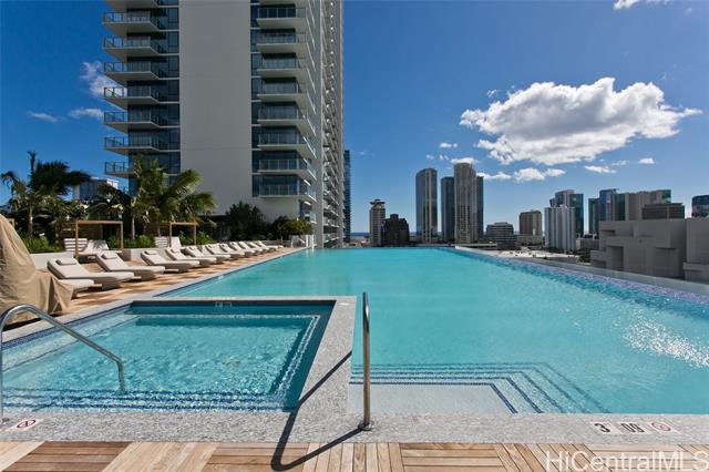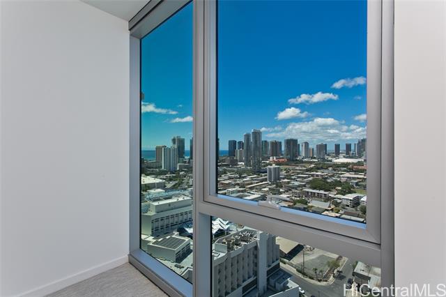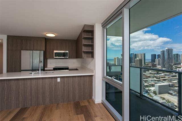 this rare, newly constructed, three-bedroom, two-bathroom corner residence, located in the heart of honolulu's most vibrant neighborhood, offers spacious interiors and a lanai for modern living. the master bedroom features a walk-in closet, while the other two bedrooms share a fully equipped bathroom. the residence also features a spacious laundry room, a welcoming foyer, and an open-concept kitchen with an island bar. enjoy breathtaking panoramic views of the ocean, city, and mountains from the lanai. this pet-friendly building offers a full complement of amenities, including an infinity pool, spa, bbq cabanas, movie theater, fitness center, yoga studio, and sauna. it seamlessly combines luxury, an elevated lifestyle, and a highly desirable location with unparalleled convenience. -