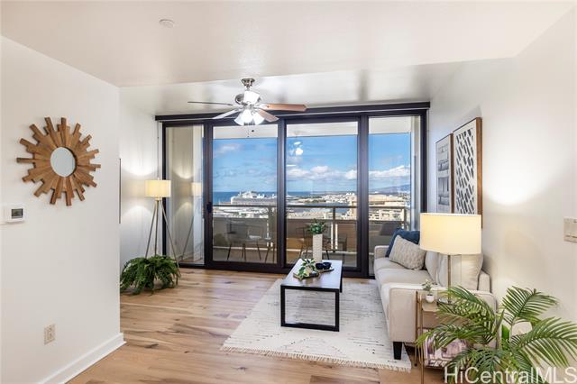"experience modern urban living at keola lai #2003, a beautifully refreshed 2-bedroom, 2-bath residence perfectly positioned high above kakaako. freshly painted and featuring brand-new appliances along with a new central ac system, this move-in-ready home combines modern comfort with elevated design. floor-to-ceiling windows frame sweeping ocean, city, and mountain views, while the private lanai—a rare feature not available in all units—extends your living space for effortless indoor-outdoor enjoyment. this residence also includes the luxury and convenience of two parking stalls. keola lai is one of honolulu's premier luxury communities, offering resort-style amenities including a fitness center with brand new equipment, pool, bbq areas, and 24-hour security—all just moments from salt at kakaako, downtown honolulu, and ala moana. bonus!!! take advantage of an assumable va loan at an incredible 2.25% interest rate! don't miss this opportunity to own a stylish, move-in ready home with unbeatable financing options." -