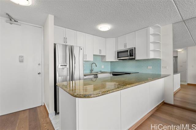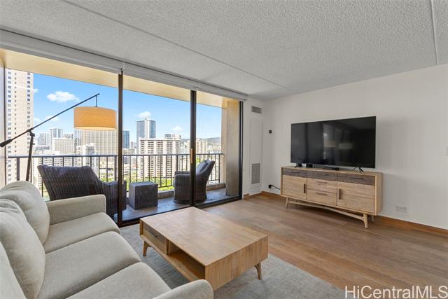 step into this bright and well-appointed 1-bedroom, 1-bath unit w/1-covered, assigned parking featuring generous living & bedroom areas plus a lanai for relaxing and taking in the beautiful views! large windows/sliding door brings in natural light and help extend the living space to the outdoors. features include fully renovated kitchen & bath with stainless steel appliances, hardwood/marble floors, new central air conditioning and storage locker. building includes recreation deck with pool, bbq, fitness room, sauna, library/game room, putting green and 24-hour security/security guard. excellent location in the west end of waikiki w/short distances to the beach, hawaii convention center, ala moana shopping center, bus-lines, eateries & shops! -