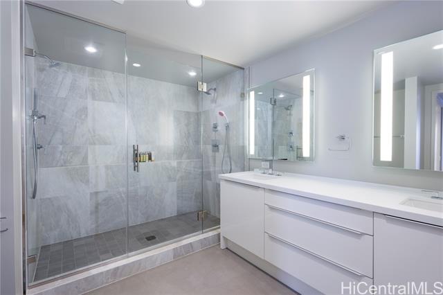 one-0f-a-kind combined residence (#4303/4305) with separate storage (111 sf), offering 2,662 sq.ft. of luxurious living space and four full-size parking stalls. enjoy 270 degree panoramic views from the mountains to the turquoise ocean, with every room capturing a view. by day, take in the blue sky, green mountains, and shimming ocean; by night, be enchanted by the city light and breataking sunset glow. this exceptional home features floor-to-ceiling glass windows, custom cabinets/closets. the expansive living and dining areas, den, walk-in pantry, and spacious laundry room create a perfect blend of comfort and sophistication. relax on the open lanai, sipping wine while watching the sunset. residents enjoy resort-style amenities, including a heated infinity pool, fitness center, spa, guest suites, and dog park, all within one of honolulu's most desired urban addresses -