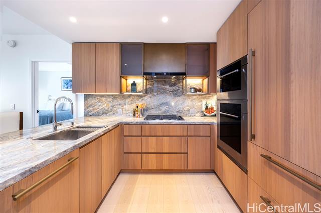 victoria place stands as an icon of ultra-luxe condominium living in honolulu, coveted for its elevated resort amenities, boutique service, and proximity to beaches, parks, shops, and restaurants. this 2-bedroom, 2-bath residence delivers refined luxury living throughout its 1,107 sq.ft. modern-design floor plan, with pacific ocean and boat harbor views from the living room and both bedrooms. a chef's kitchen with top-of-the-line sub-zero and wolf appliances and elegant marble-wrapped bar seating connects with the primary living room, offering a modern luxury lifestyle experience. the primary bedroom suite includes a walk-in closet, and a resort ensuite bath with walk-in shower room and deep soaking tub. enjoy world-class amenities including 3 pools, a state-of-the-art fitness center, spas, outdoor cabanas, bbq areas, a wine cave, a chef's kitchen, a private dining room, a theater room, a media room, and guest suites. elevated luxury, in the heart of honolulu: welcome home to victoria place #903. -