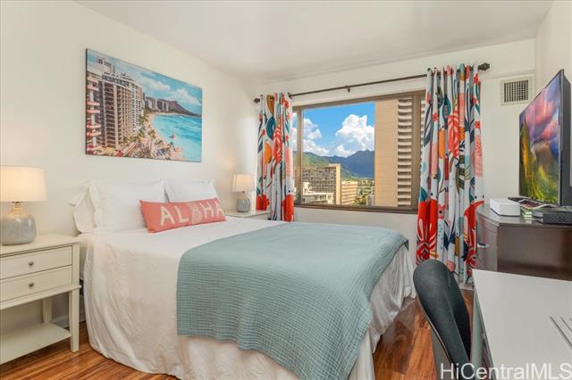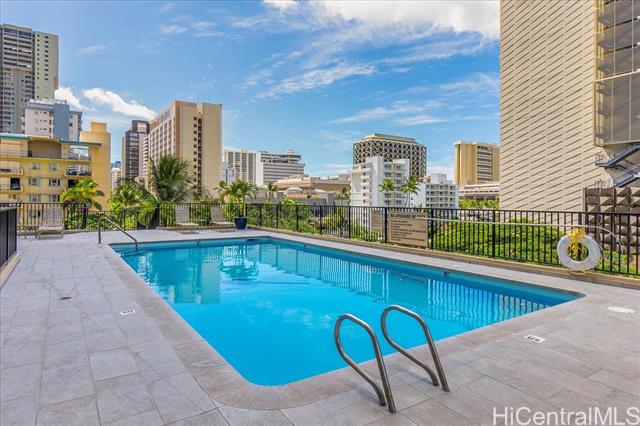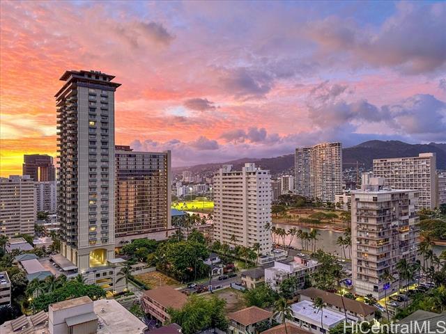 visit open house on nov 16th at 2pm-5pm. experience elevated living in this stunning high-floor unit, located on the coveted cooler side of the building. revel in breathtaking views of vibrant city lights, the majestic mountain range, gorgeous rainbows, and the ala wai canal. this well-maintained, move-in ready condition 1-bdrm, 1-bath residence features an upgraded kitchen and flooring, complemented by an efficient open floor plan. enjoy the spacious lanai, ideal for relaxation at golden hour. modern conveniences include central ac, an in-unit washer/dryer, and a separate storage locker. four paddle is a highly regarded, pet-friendly, secure high-rise known for its low-key charm. the 5th flr. boasts a fantastic recreation area with a large heated pool, expansive sundeck, jacuzzi, sauna, bbq facilities, and outdoor dining area. with your own assigned parking space and 6 guest parking spots, hosting visitors is a breeze. located just a short distance from the world-famous waikiki beach and steps away to bus lines, shops, and eateries. the maintenance fee covers all utilities. -