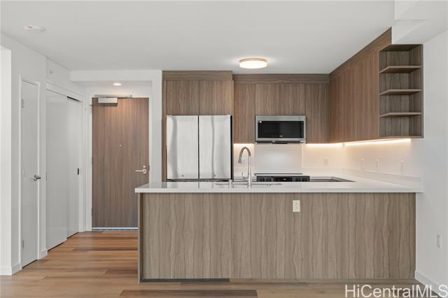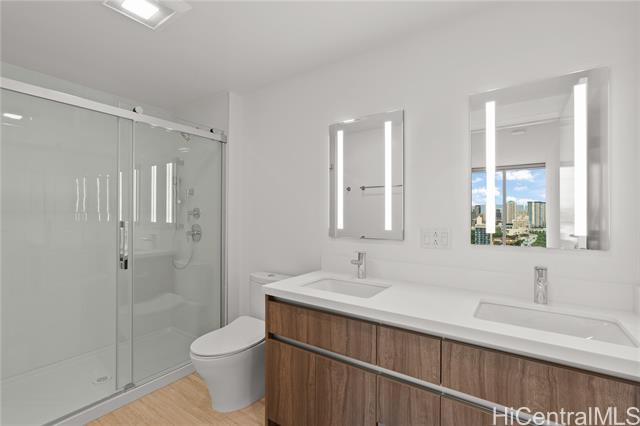 "experience contemporary honolulu living at the park on keeaumoku, one of the city's newest and most anticipated condominium developments! this brand-new 2-bedroom, 2-bath residence on the high floor offers sweeping partial ocean, mountain and city views from its private lanai. the thoughtfully designed split-bedroom layout ensures privacy, complemented by an open-concept living space with luxury vinyl plank flooring, quartz countertops, and modern finishes throughout. enjoy the convenience of two side-by-side parking stalls, split a/c in every room, and resort-style amenities including an infinity pool, fitness and yoga studios, bbq cabanas, theater, club lounge, and lush landscaped gardens. located in the heart of honolulu, just minutes from ala moana center, waikiki, schools, and hospitals, and with shops and cafés right downstairs, this vibrant new community brings island living and urban comfort together. never lived in — move-in ready! don't miss this rare opportunity to own in honolulu's newest landmark address." -