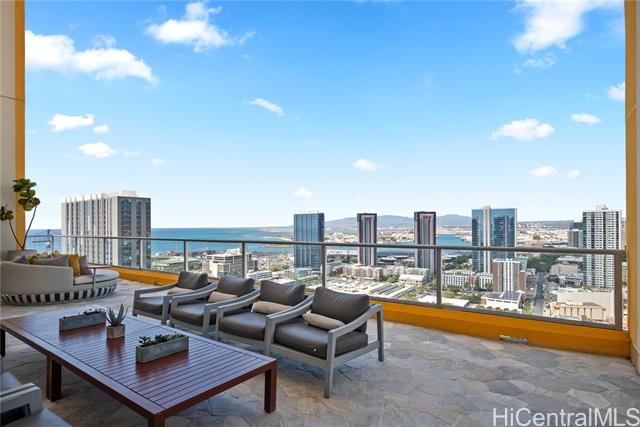 enjoy life on the top floor! experience modern urban living in this beautifully upgraded penthouse residence, featuring 9-foot ceilings, luxury vinyl flooring throughout, motorized blinds and custom lighting. the open-concept layout includes a spacious living room, stylish kitchen island with upgraded kitchen backsplash, upgraded bathroom tile and cabinetry, smart toilets, and a custom-built desk and storage system in the primary bedroom. stay comfortable year-round with split a/c units in every room. located in the heart of ward village, you're just minutes away from whole foods, movie theaters, popular restaurants, and ala moana beach park. amenities galore, including a bbq area, recreation and karaoke rooms, conference and theater rooms, outdoor playground, children's playroom, fitness center, yoga room, and more. enjoy added convenience with a spacious storage room right down the hall, an additional storage locker on the 3rd floor (same level as your parking), and two full-size, side-by-side parking stalls. move-in ready—your penthouse lifestyle awaits! -