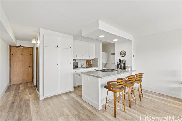 rare high-floor studio in the iconic discovery bay! unit 3905 in the endeavor tower offers the best of island living with sweeping water, city, and mountain views from the cool side of the building. recently updated and fully furnished, this residence features luxury vinyl flooring, a full kitchen, in-unit washer/dryer, and one assigned parking stall. enjoy amenities including a pool, spa, sauna, fitness center, bbq areas, 24-hour security, and full-service management. wifi and basic cable are included in the maintenance fee. prime west-end waikiki location near ala moana center, ala moana beach park, and world-class dining and shopping. don't miss this opportunity—schedule your showing today! the unit is 96.893% fee simple with the aoao holding both the right and obligation to acquire the remaining 3.107% leasehold interest by december 31, 2039. lease rent is $22.82/quarter or $7.61/month. -