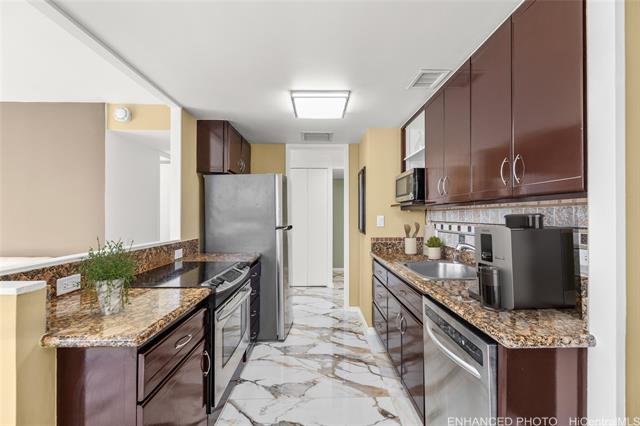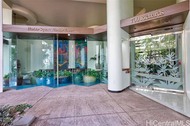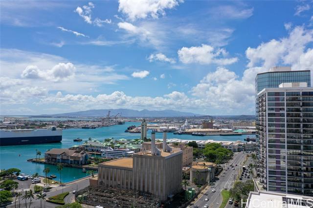 welcome to elevated urban elegance in the heartbeat of hawai‘i's capital city. this high-floor corner residence is wrapped in ocean, mountain & city views, framed by floor-to-ceiling windows that capture stunning sunrises & opens to an expansive lanai-your private sanctuary above vibrant downtown honolulu district. beautifully updated with marble floors, smooth ceilings, newly painted, modern finishes, an open kitchen with granite countertops & stainless-steel appliances, this 2-bedroom retreat blends island serenity with timeless sophistication. enjoy central a/c, covered parking, 24/7 security & maintenance fees that include it all: electricity, water, sewer, cable & internet. harbor square enhances convenience with a renovated pool deck, on-site manager, secure entry, bike storage, trash chute, and same-floor storage locker. explore honolulu's eclectic art district, chic dining, boutique markets, cu hi, pickles @ forté pickleball, doho night market & architectural landmarks - state capitol, iolani palace & aloha tower. this is urban island living at its most inspiring! live beautifully, work confidently, and thrive effortlessly in one of honolulu's most captivating communities. -