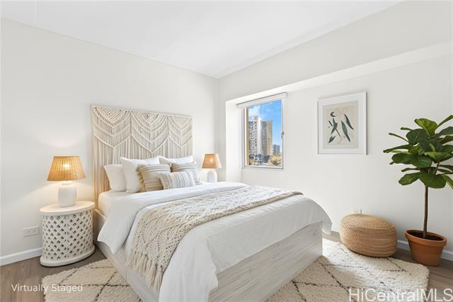 welcome to island living in the heart of waikiki at the keoni ana. this beautifully remodeled, move-in-ready condo offers sunset views over fort derussy park with the ocean just moments away. step into a bright, modern interior featuring a brand-new kitchen with high-gloss soft-close cabinetry, quartz countertops, and new stainless steel appliances. the bathrooms have been tastefully refreshed with new tile walls, updated vanities, and a new shower. luxury waterproof vinyl plank flooring flows throughout the home, complemented by fresh interior and exterior paint, new window a/c units, and a split a/c system in the living area. be the first to enjoy this thoughtfully upgraded 2-bedroom, 1.5 bath residence. the keoni ana offers 24-hour security, ample guest parking, bbq areas, and a scenic walking/jogging path. enjoy the park and mountain views from the covered lanai, all just minutes from waikiki beach, world-class dining, shopping, and the very best of island living. -