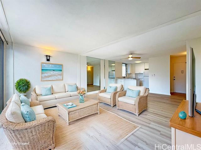 enjoy privacy, extra living space and natural light in this end unit with enclosed lanai. minutes away from some of honolulu's best attractions: hawaii convention center, ala moana center, ala moana beach park, waikiki, waikiki beach, kaka'ako, plus countless dining and entertainment options. recent renovations include new lvt flooring, fresh interior paint, updated light fixtures and ceiling fans and a complete kitchen upgrade with new cabinets, quartz countertop and appliances. breakdown of maintenance fee of $971.00- $921.00 maintenance fee and $50 for cable tv/internet. other fees monthly of $1,909.00 is for a special assessment through january, 2026 which will be paid in full by the seller. -