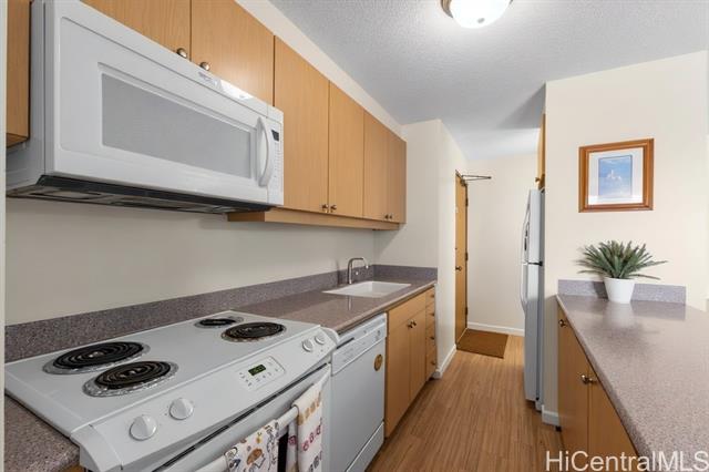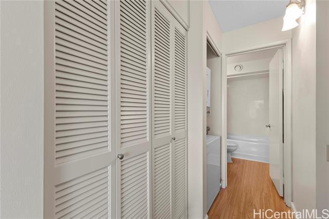 great value for a good condition, fully furnished, move-in ready 1-bedroom in discovery bay's resolution tower (diamond head side). this remodeled unit features laminate flooring throughout, an updated kitchen with dishwasher, central air conditioning, an in-unit washer and dryer, a spacious covered lanai, and 1 assigned parking stall. located on the cooler, mountain side of the building, this unit offers comfortable and convenient island living with quick access to waikiki and metro honolulu. amenities include a pool, spa, sauna, fitness center, recreation/sun deck, bbq area, 24-hour security, and full-service management. maintenance fee covers wi-fi, basic cable, hot water, sewer, and ac chiller. convenient waikiki location near ala moana center, ala moana beach park, dining, shopping, and entertainment. the unit is 96.893% fee simple with the aoao holding both the right and obligation to acquire the remaining 3.107% leasehold interest by december 31, 2039. lease rent is $37.87/quarter or $12.62/month. -