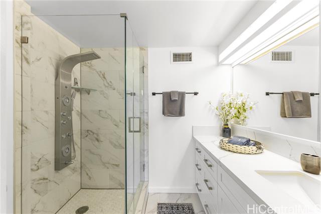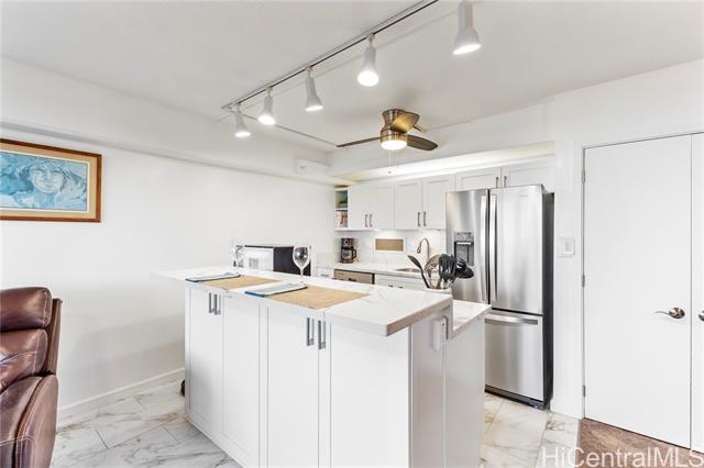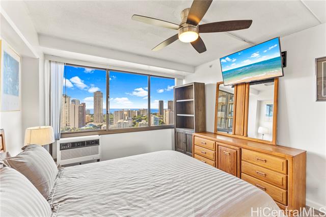 "rarely available high floor ocean view fee simple 2 bedroom/2 bathroom with 2 covered side by side parking stalls! featuring beautiful ocean, waikiki and city views. enjoy the friday night fireworks and amazing sunsets from your spacious lanai. this upgraded unit offers an open concept kitchen, washer/dryer, extra storage, air conditioning, ceiling fans, newly tinted windows, new refrigerator and much more. excellent location on park setting with tropical grounds, close to famous waikiki beaches, ala moana shopping center, restaurants and the university of hawaii. the sprinkler/fire alarm system has been completed throughout the building without any special assessment. the marco polo offers resort-like amenities which include a wonderful large swimming pool, sauna, tennis, basketball/pickleball courts, bbq, golf driving nets, a convenience store in the lobby, car wash area, lots of guest parking, storage, 24 hour security,100% hurricane coverage with reasonable monthly maintenance fees. property taxes reflect veteran exemption. photos have been enhanced." -