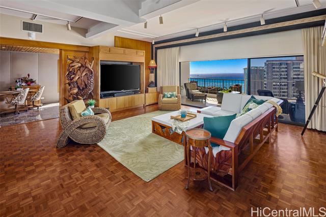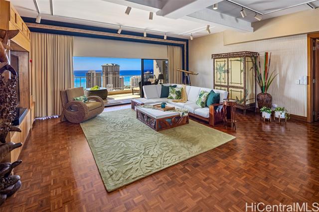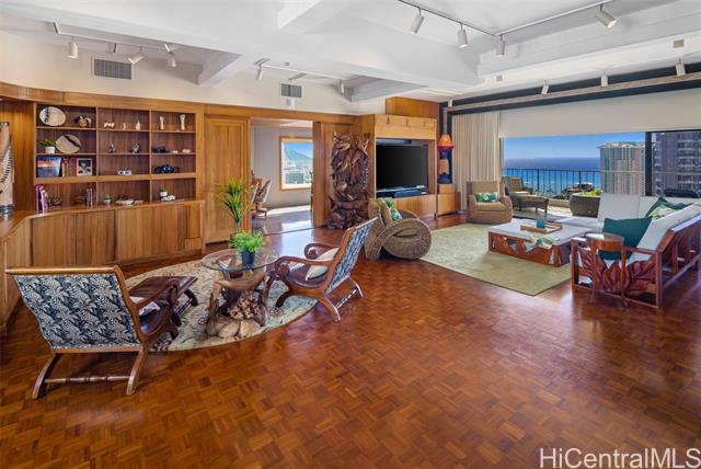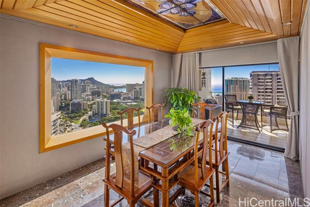 "the grand penthouse at waipuna: a crown jewel above waikiki. experience a rare, commissioned 3,400 sq. ft. single-level masterpiece of meticulous design. remodeled in 2025. perched high above the city, this sprawling residence commands breathtaking, panoramic vistas of iconic diamond head, the turquoise pacific, and the rhythmic glow of friday night fireworks. interiors are a masterclass in artisanal craft, curated with fine marble, granite, and custom stained-glass. every detail exudes sophistication, from satin-smooth parquet floors to bespoke koa and eucalyptus cabinetry. designed for grand entertaining, the home features a designer chef's kitchen, custom bar, and an oversized living room with a stunning picture window highlighting diamond head. all adjoined by an expansive 820 sf lanai. four generous bedrooms and three full baths offer a serene retreat from the vibrant city below. known as hale nani—a ""beautiful home""—this elite sanctuary is within the waipuna, renowned for excellent management and remarkably low fees. furnishings are negotiable for a turn-key lifestyle. 3d tour on video link." -