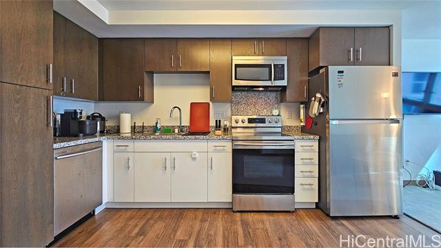 "high floor 1-bedroom, 1-bath residence with 1 assigned stall in ward village. this well-maintained unit features an open concept living area and a comfortable bedroom with ample storage. enjoy ocean views along with city and neighborhood vistas. building amenities include a fitness center, karaoke room, sky deck, playground, surfboard storage and on-site management. conveniently located near ala moana beach park, whole foods, dining, shopping and entertainment, offering an exceptional urban lifestyle." -