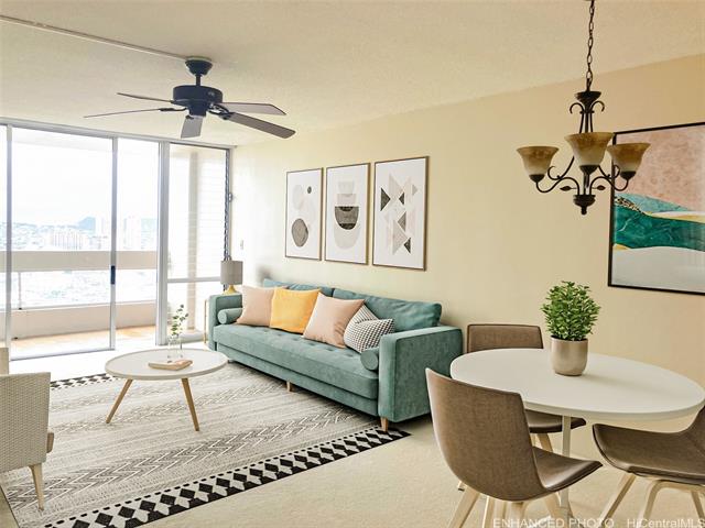 high floor with fabulous views of diamond head, city, ocean. overlooks central union church. building has recently completed its plumbing project and seller has paid off the assessment! brand new range and range hood. drapes just 2 years old. plumbing and electrical fixtures inspected and cleared. 2 new toilets. natural light brightens the unit. lot of storage in hallway. central location to schools, hospital, churches, shopping--all the benefits of living in town! lots of guest parking and nice amenities, including a heated salt water pool, meeting room, bbq area, 24-hour security, bike rack, surfboard storage. new pool/pool deck/pool furnishings. meeting/party room newly refurbished maintenance fee is for 2026 (increase of 4%). va-approved. sorry, not pet-friendly. if your buyer is looking for a good location/convenience, space, storage, 24/7 security patrol, useful amenities, call to see this 2/2! -