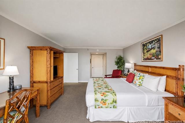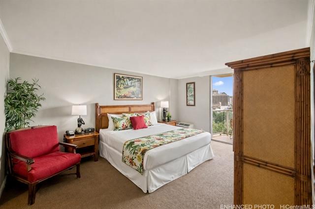 welcome to luana waikiki, a boutique condotel set along the peaceful edge of waikiki, adjacent to fort derussy park and just a short distance to waikiki beach, world-class dining, shopping, and entertainment. this rarely available “07” corner unit captures unobstructed ocean views with sunrise and sunset, plus sparkling city views and lush greenery over fort derussy park. the 1-bedroom, 1-bath suite includes a spacious kitchen with granite countertops, private lanai, travertine stone + carpet flooring, and wall a/c. ideal for island living or a flexible second home setup, comes with private owners closet. enjoy resort-style amenities including a heated pool and sun deck, bbq grills, and a state-of-the-art fitness center with park views, plus concierge/doorman services and on-site conveniences. one or more photos have been enhanced. -
