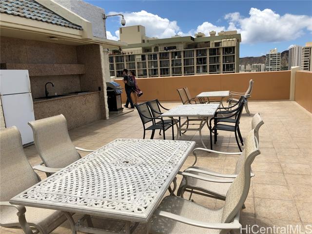 super convenient 444 nahua in the heart of waikiki, nearby all restaurants, international market, world famous waikiki beach. nice views of city, mountains, ala wai canal, golf-course and diamondhead on this higher floor end unit. w/d in the unit. great amenities on rooftop including pool, sauna, exercise room & bbq. 24 hours security with res, mgr. on site. tenant occupies 48 hour notice to show. -