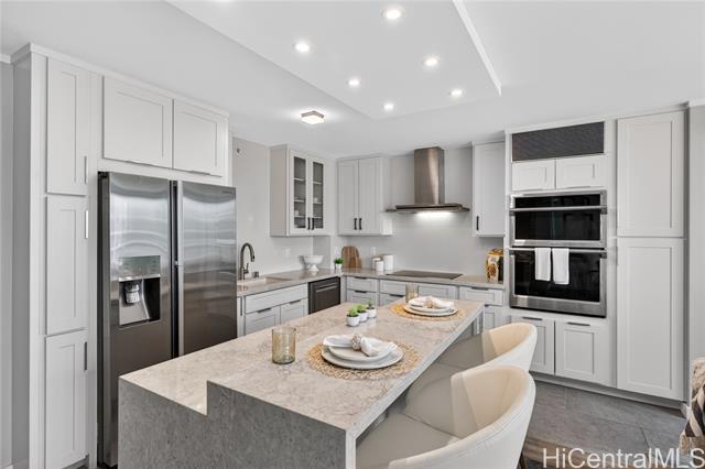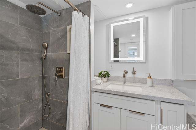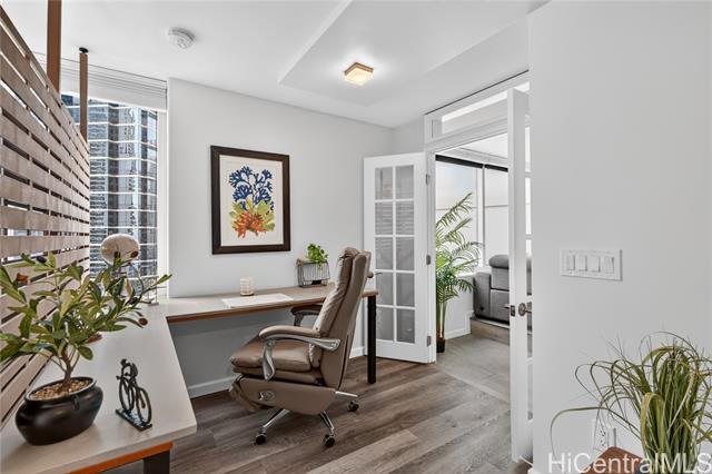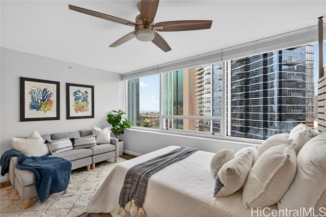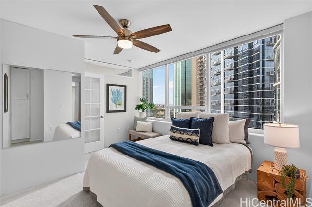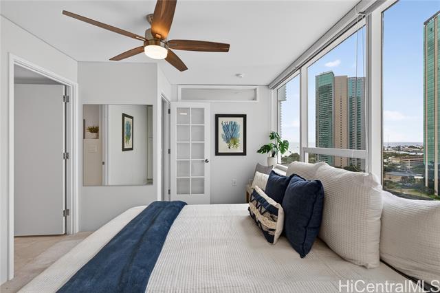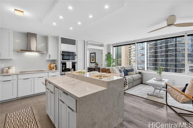 an elevated lifestyle at the crossroads of beach, shopping, and dining. turn-key luxury living awaits in this thoughtfully designed, designer-finished 2-bedroom, 2-bath condo offering 997 sq. ft., fully renovated in 2020. the light-filled open kitchen and living area features a central island, stainless steel appliances, solid-surface counter tops, semi-custom cabinetry, a built-in wall entertainment shelf, and luxury vinyl tile throughout the living, dining, kitchen, and primary bedroom. both bedrooms offer custom wardrobe closets, while the en-suite primary bedroom is enhanced with french doors and a spacious work desk area. resort-style amenities include a heated infinity-edge pool, whirlpool, pickle ball/tennis courts, putting green, playground, picnic areas with gas grills, landscaped indoor and outdoor gardens, and a meeting room. perfectly located across from ala moana shopping center and beach park, with premier dining and shopping just steps away. one assigned parking stall with two storage lockers. storage room in hallway available to rent monthly. 24/7 on site security and secured entryways provide peace of mind. -