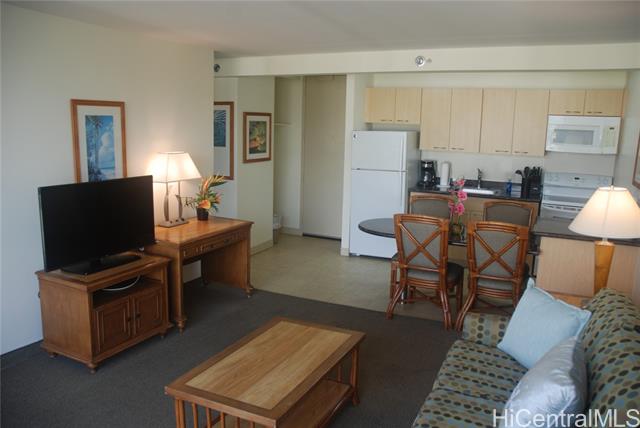 high floor fully furnished one-bedroom, one-full bath unit with unassigned parking stall on the cooler side of the building. fabulous mountain and city view. sit on lanai and enjoy the city lights at night. this unit has (nuc) non-confirming use certificate. blocks away from the beach, dining, entertainments, shopping and the bus line. it has many amenities including pool, bbq, fitness room, community laundry, 24 hour security and more. -