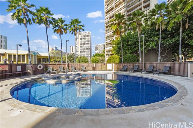 "high-floor 38th-level 2bd/2ba residence in the ewa tower at royal iolani, offering approx. 1,147 sq. ft. of interior living space plus a 318 sq. ft. lanai with panoramic views of diamond head, the ocean, waikiki, and ala wai golf course from every room. with only four units per floor, this is the only unit with true cross-ventilation, creating a bright and airy open layout with a recently updated interior. the spacious lanai is ideal for enjoying sunsets and friday night fireworks. iolani school is located directly next door with no major streets to cross, a rare convenience in honolulu, and the property is also minutes from uh manoa and punahou school. resort-style amenities include a heated pool, jacuzzi, fitness center, sauna, tennis courts, ev charging stations, and ample guest parking. maintenance fee covers all utilities, including central a/c, electricity, water, sewer, cable, and internet. recent building improvements include new elevators and completed wastewater pipe replacement. pet-friendly (buyer to verify). prime location near waikiki beaches, dining, shopping, and daily conveniences." -
