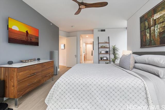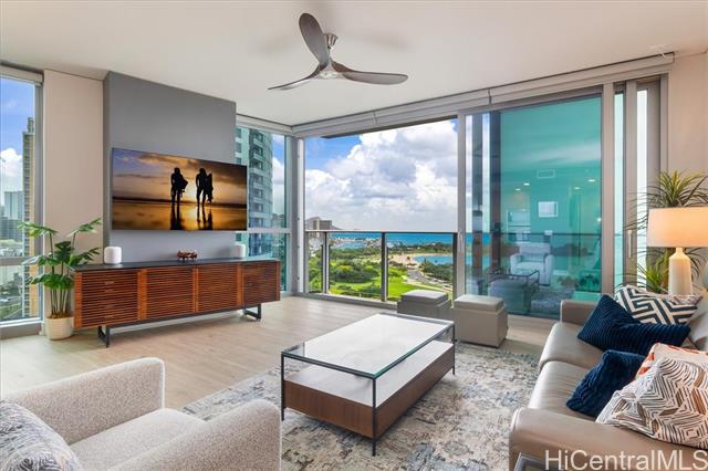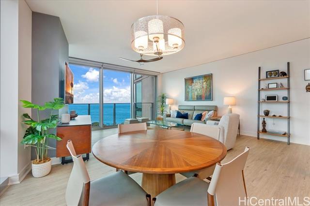 this highly sought-after diamond head–facing ocean corner residence is located on the 15th floor and offers one of the largest 2 bd floor plans in the building, approx. 1,620 sf. this desirable corner stack enjoys sweeping ocean and mountain views with no future construction obstructions, providing exceptional view protection and privacy. the prime location is ideal for enjoying weekly fireworks, the honolulu marathon starting point, parades, and other iconic island events. impeccably maintained and in superb condition, the residence reflects true pride of ownership throughout. over $150,000 in upgrades have been completed, including wood flooring throughout, new appliances, a new ac system, a new hot water tank, ev charger and electric window shades in all living areas except the second bedroom. floor-to-ceiling sliding glass doors seamlessly connect indoor and outdoor living, inviting gentle trade winds and enhancing the open, airy island lifestyle. the unit layout is filled with natural light and offers an elegant yet comfortable living experience. this is a rare offering that combines size, views, condition, and long-term value. -