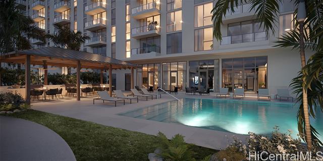 a freshly designed loft full of possibilities. oversized windows fill the space with natural light, while soaring 16.3-foot ceilings create an open, airy atmosphere that makes you feel at home. the flexible two-level floor plan adapts to your lifestyle—perfect for everyday living, a private upstairs retreat, or a comfortable home office. on the first level, you'll find two convenient entrances with parking directly behind the unit, a generously sized living room, a gallery-style kitchen with bosch appliances, an enclosed den for an office or bedroom, and a half bath. upstairs, the spacious bedroom offers room for a desk or sitting area, a walk-in closet, and a full bath—your own quiet space to unwind. located on kapiolani boulevard, kuilei place blends city convenience with a true sense of home. interiors are by award-winning philpott's interiors. sustainable features include water reuse, solar heating, and ev chargers. resort-style amenities extend your living space beyond your front door: swimming pools, bbq cabanas, two dog parks, a playground, walking paths, two fitness centers, and seven inviting club rooms. let's welcome you home. -