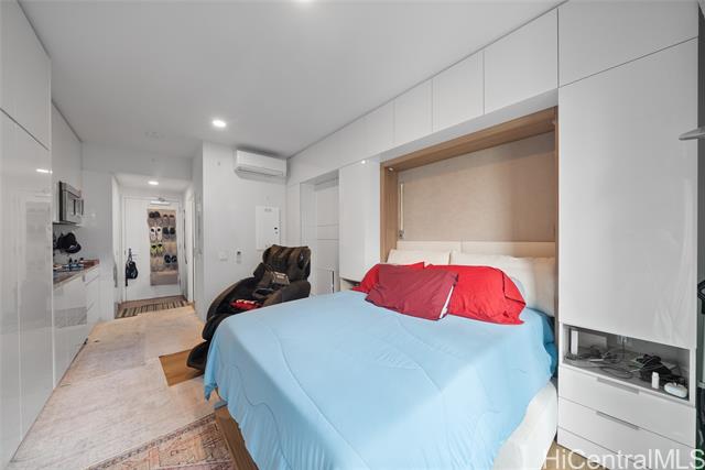 this thoughtfully designed studio located in ‘a‘ali‘i at ward village features high-quality, built-in furnishings that maximize both space and functionality. the unit includes a custom murphy bed system with integrated couch, a built-in desk, and abundant closet and cabinet storage. the kitchen is outfitted with a sleek custom-panel refrigerator and dishwasher, creating a seamless and luxurious aesthetic while maintaining full functionality. residents of ‘a‘ali‘i enjoy resort-style amenities, including a swimming pool, hot tub, state-of-the-art fitness center, multiple spacious gathering and party rooms, and a stunning 42nd-floor sky lounge with panoramic views. ideally situated in the heart of ward village, this planned, walkable neighborhood offers convenient access to ala moana shopping center, waikiki, whole foods market, and an array of dining and entertainment options! the unit also includes a dedicated parking stall equipped with a 220v outlet, perfect for electric vehicle charging! -