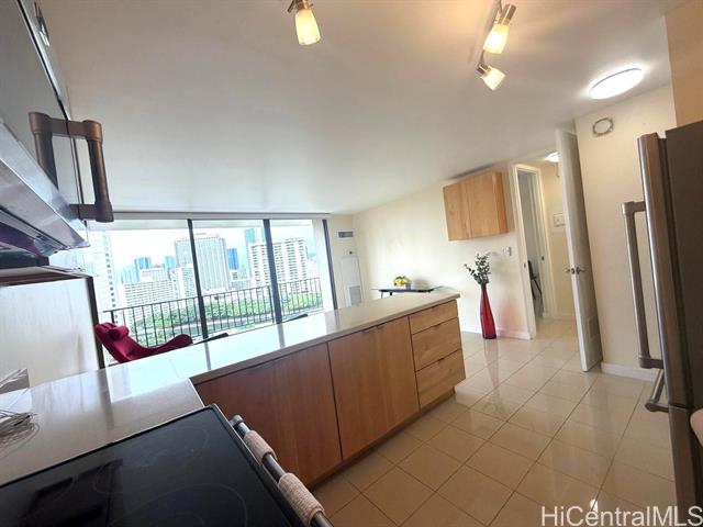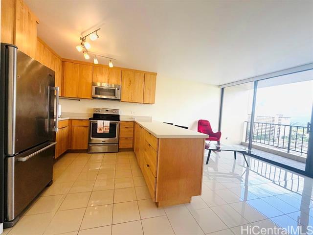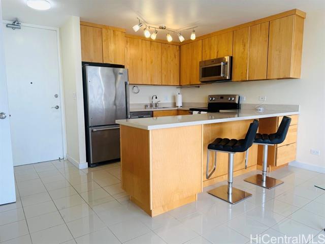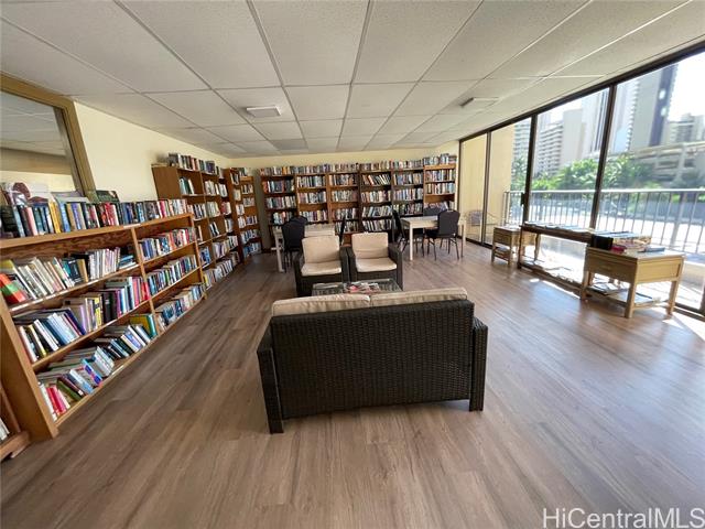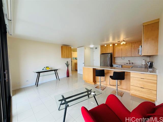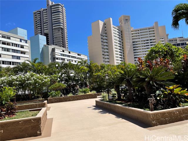a must see! chateau waikiki is conveniently located at the entrance to waikiki with resort-like amenities. this is a well-maintained, spacious 1-bedroom, 1-bathroom unit with canal/city/sunset view. 1-assigned parking stall inside a gated garage. no popcorn ceiling!! tile flooring throughout the unit with soundproof underlayment. custom maple cabinets and quartz countertops in the open kitchen. custom built quartz desktop working station in bedroom. custom-made automatic shades in living and bedroom. washer and dryer in unit. the 5th floor deck is beautifully landscaped with bbq cabanas to entertain/relax with family/friends. other amenities: heated saltwater pool, sauna, 2 fitness rooms, 2 recreation rooms, library. 4 modernized elevators. easy access to waikiki, ala moana shopping center, beaches, restaurants, entertainment and much more. maintenance fee includes: ac, electricity, water, hot water, sewer and common area. a good size storage locker assigned to this unit on the same floor. there's bike and surfboard storage. 24 hour security. 100% hurricane insured. unit in move-in ready condition. furniture in the unit is included in the sale. -