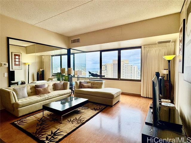 "rarely available, beautifully renovated penthouse at chateau waikiki offering soaring 9.5-foot ceilings and breathtaking panoramic views of the ocean, and vibrant island city views. this spacious, fully furnished, move-in-ready residence features newer flooring, updated kitchen cabinetry, and a bright, open-concept layout designed for effortless island living. enjoy elevated views of paradise from your high-floor vantage point, perfectly positioned near the entrance to waikiki for exceptional convenience. you're just minutes from world-famous waikiki beach, ala moana center, and ala moana beach park—ideal for premier shopping, dining, and outdoor recreation. chateau waikiki offers an impressive suite of resort-style amenities, including a swimming pool, bbq area, fully equipped gym, sauna, recreation rooms, car wash area, and 24-hour security. maintenance fees include electricity, central ac, cable, water, sewer, providing exceptional value and peace of mind. the unit includes two parking stalls (tandem) and additional storage! don't miss your chance to own this exceptional penthouse in one of waikiki's most desirable locations." -