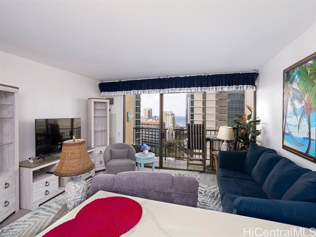 this exquisitely renovated one-bedroom, one-bath end-unit offering a serene, ocean view. this elegant home features generous closet space, custom remote-controlled blinds (levitor) in both the bedroom and living room and new valances. thoughtfully designed with modern finishes & exceptional attention to detail, the rare convenience of parking on the lobby level. a truly sophisticated residence also includesated retreat combining comfort, privacy, and the charm of waikiki. renovations were done in 2022 and included remodeling the kitchen, replacing the kitchen counters, vanity cabinet & lavatory cabinet. the linen closet was transforned to a smaller closet. there is a stainless steel full size stackable washer and dryer, new kitchen ligome renovations were done by the prior owner) just minutes from the beach, shopping, restaurants, schools and churches. kapi'olani park, ala wai golf course. bus stop is about half a block away. on the 5th floor is the pool, sauna, jacuzzi, pool deck and bbq gas grills w/a valet kitchen. there is a doggie path on the side of the building. there is 24-hour security, a manager & great maintenance staff. come take a look at your future home! -