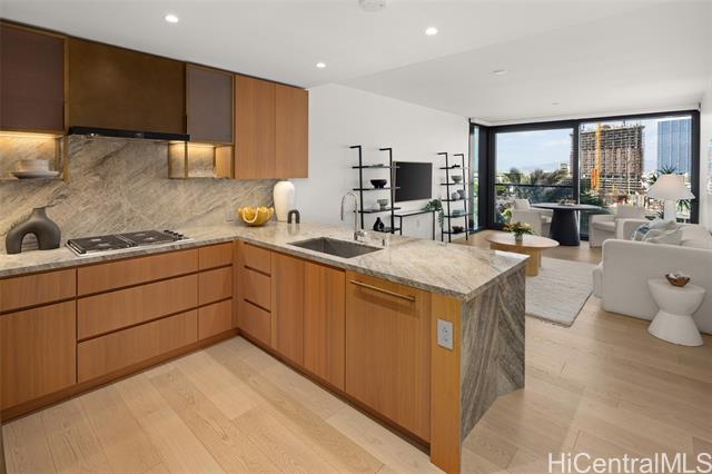 new turn-key listing at victoria place, ward village. beautiful, fully-furnished 1-bedroom, 1-bath residence with one reserved parking stall, overlooking the lush amenity deck. located in victoria place, the newest luxury building developed by howard hughes corporation within the ward village master-planned community. the residence features custom cabinetry by studio becker, a sub-zero refrigerator, and wolf gas range, oven, and microwave. this 350-unit front-row development was designed by solomon cordwell buenz and offers resort-style amenities, including lap and lounge pools with ocean views, a wine cave, spa, hot and cold plunge pools, fitness center, movie theater, and 24/7 concierge and valet services. -