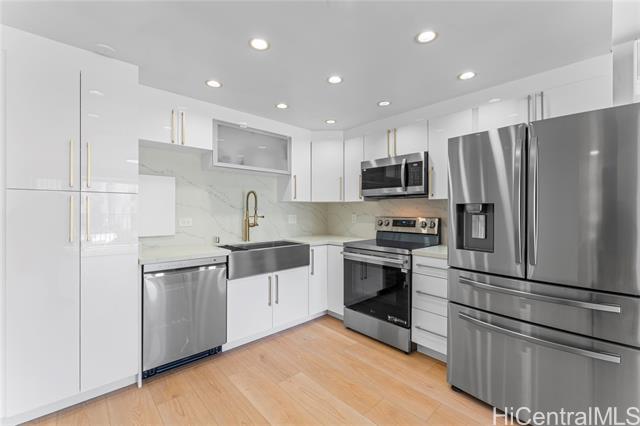 extensively renovated 2br/2ba corner-end residence featuring an open and efficient floor plan with recessed lighting, luxury vinyl plank flooring, plantation shutters, and a beautifully designed kitchen. positioned on a mid-level floor with lovely ocean, ala moana beach park, and city light views. 1350 ala moana is a premier, va-approved building, and has recently completed significant common-area improvements. amenities include a fitness room, pool, spa, bbq pavilions, party room, and lush tropical landscaping within a secure, well-maintained setting. unbeatable convenience with direct access to ala moana shopping center, ala moana beach park, waikiki, kaka'ako dining, groceries, nightlife, bus lines, and the vibrant urban lifestyle of the ala moana/kaka'ako corridor. (some photos have been virtually staged/enhanced). -
