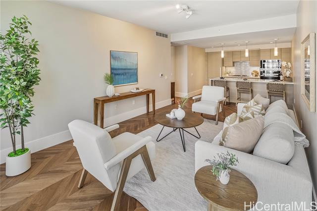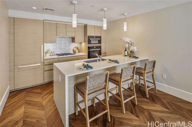 "life at the anaha, the hawaii lifestyle you are looking for whether it be full time or just a few months of the year. first off, life at the anaha is sophisticated luxury living! from the truly resort-like amenities to front desk concierge, to be situated right in front of honolulu's best and largest beach park with friendly ocean waters and land activities too. plenty of shade, grassy areas and exercise paths. close by, world class dining and ala moana shopping center, the country's largest, open-air mall with world class shopping and a international food court that has a dish for everyone! step inside to this home to 9' high ceilings, ocean views from both living room and bedroom, hardwood floors, miele appliances, gas cooking, quartz countertops, wine cellar and close to 800 square feet of fine living area. bring your pets too, they are welcome here. did i mention the guest suites? whole foods is conveniently located across the street. come see today!" -