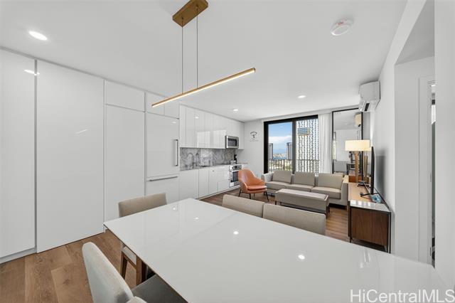 "welcome to unit 2303 at a‘ali‘i, a modern 1-bedroom residence in the heart of ward village. this fully furnnished unit offers expansive city and sunset views through floor-to-ceiling windows, filling the home with natural light and island breezes. the open-concept layout features a sleek contemporary kitchen with quartz countertops, modern cabinetry, seamlessly flowing into the living and dining areas. a‘ali‘i is known for its resort-style amenities, including a rooftop sky deck with ocean views bbq cabanas, fitness center, yoga room. located just steps from ala moana beach park, whole foods, ward village shops and dining, this unit offers an exceptional urban island lifestyle. don't miss this opportunity to own in one of honolulu's most desirable communities." -