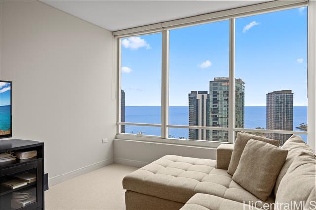 high floor unit with great ocean views from living room and bedroom. good location, close to ward center, movie theater, ala moana, salt, and blaisdell. fine dining doraku, chai bistro, on 1st floor. very secure building. to be sold fully furnished, and move-in ready. -