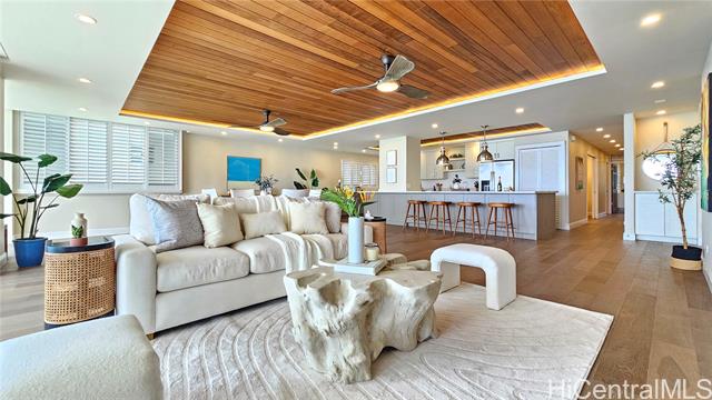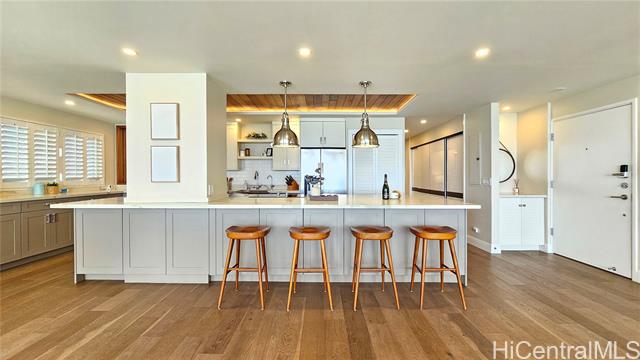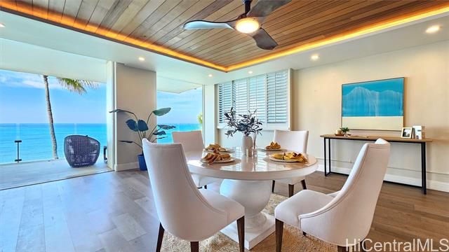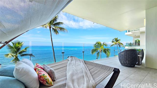 experience refined oceanfront living on honolulu's gold coast. this exceptional 3-bedroom, 2-bath residence was fully remodeled in 2020 and showcases unobstructed 180° panoramic views of the pacific ocean, perfectly framed by swaying coconut palms. this expansive home features 1,984 sq. ft. of interior living space and a spacious 320 sq. ft. lanai, featuring an open-concept layout designed for elevated living and effortless entertaining. the expansive living room's lanai doors open wide to capture endless ocean views, while the spacious lanai provides a front-row setting for sunsets, surf, and seasonal whale watching. two bedrooms are positioned to enjoy beautiful diamond head views, creating a rare balance of ocean and mountain scenery. this boutique fee simple gold coast building offers just two units per floor and features see-through glass railings, secured entry, covered garage parking, and 14 guest parking stalls. ideally located near waikiki, kapiolani park, and diamond head, offering a private oceanfront lifestyle moments away from world-class beaches and dining. -