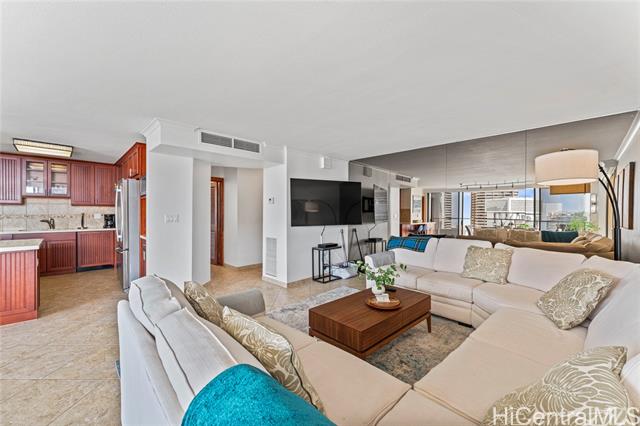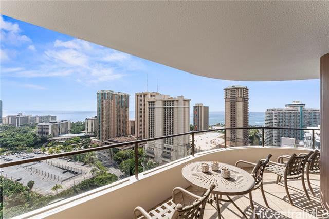 enjoy fantastic ocean and diamond head views from this spacious 2-bedroom, 2-bath corner residence in a landmark building in waikiki. this high-floor unit offers an extra-large wrap-around lanai, creating seamless indoor-outdoor living and a true “house in the sky” feel. exquisitely remodeled, the home features quality finishes, a bright open layout, and motorized blinds for added comfort and convenience. ideally located just minutes from world-famous beaches, dining, entertainment, and ala moana shopping center, this residence delivers the best of island living in the heart of honolulu. welcome to your piece of paradise. -