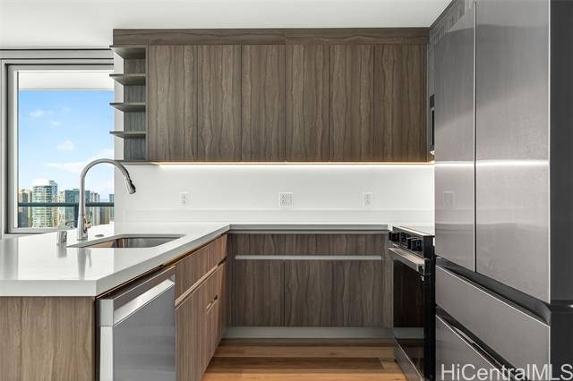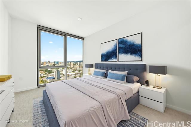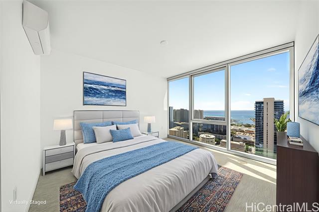 "welcome to this stunning three-bedroom corner residence at the park on keeaumoku, offering beautiful ocean views and abundant natural light throughout. this thoughtfully designed home features expansive floor-to-ceiling windows, maximizing both views and airflow, while the corner layout provides enhanced privacy and an open, airy feel. the modern open-concept floor plan is appointed with quartz countertops, luxury vinyl plank flooring in the living areas and kitchen, split ac in every room, and a private lanai—perfect for enjoying ocean and city vistas. the spacious three-bedroom layout offers flexibility for comfortable living, a home office, or guests. residents enjoy resort-style amenities, including an infinity pool and spa, bbq pavilions, movie theater, fitness center, yoga studio, sauna, and elegant clubrooms. ideally located and closed to ala moana shopping center, dining, and entertainment, this home offers the perfect blend of modern convenience and island lifestyle" -