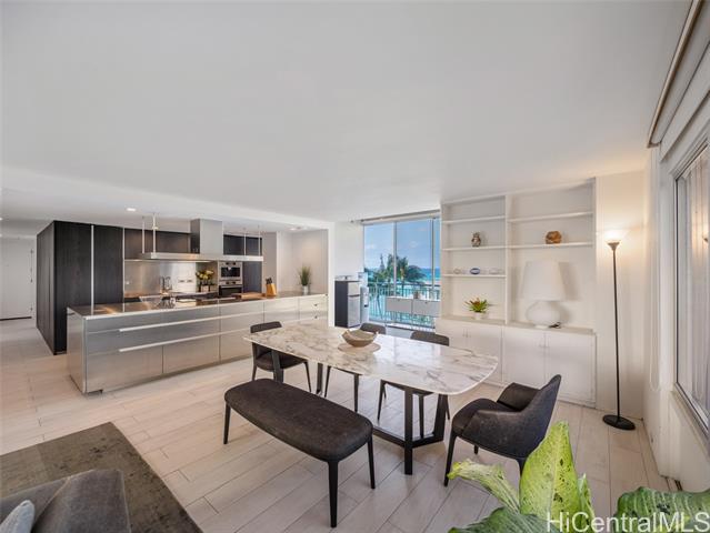 rare opportunity to reimagine a classic gold coast residence at diamond head apartments, an iconic vladimir ossipoff-designed oceanfront building set along the slopes of world-famous diamond head. this spacious condominium features the building's largest floor plan and offers tremendous potential for renovation and customization. perfect for buyers seeking to create a luxury retreat tailored to their vision, the residence enjoys sweeping views from ocean to mountain along with excellent cross-ventilation and cooling trade winds. the existing layout provides generous interior space and a solid foundation ready for thoughtful updates. a designer kitchen with poliform cabinetry, gaggenau range, bosch appliances, and a custom stainless steel island is already in place, offering a starting point for further transformation. with its premier oceanfront setting, architectural pedigree, and incredible upside, this is a rare chance to restore and elevate a true gold coast gem. -