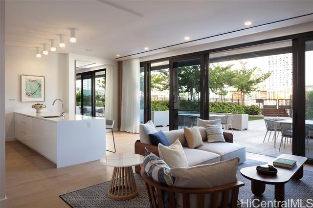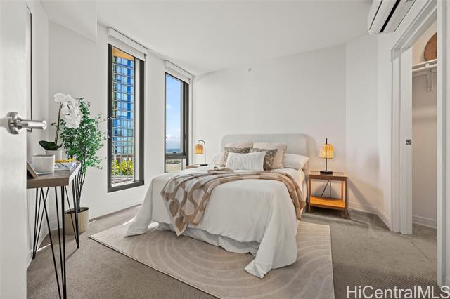 located in ward village, this one-bedroom aalii unit is located on the diamond head side of the building and provides a sunny view of the ocean from your own private lanai. bosch appliances grace the kitchen with whirlpool washer and dryer close at hand. split air conditioners in the bedroom and living area keep the unit cool and a fresh coat of paint throughout makes this unit just like new! there is one secured parking with overhead storage and a 24/7 front desk to assist you. there are two amenities decks with something for just about everyone! the penthouse level on the 42nd floor includes a 360-degree view of the surrounding ocean and mountains, comfortable indoor and outdoor workspaces, meeting rooms, and a fully equipped gym. the eighth floor pool and jacuzzi are surrounded by barbeque areas, cabanas, a playground, keiki pool and party rooms with fully equipped kitchens. a dog washing station and play area are located on the ground floor. this unit is steps from theatres, award winning restaurants, shopping, groceries, urgent care, and ocean recreation. it does not get much better! -